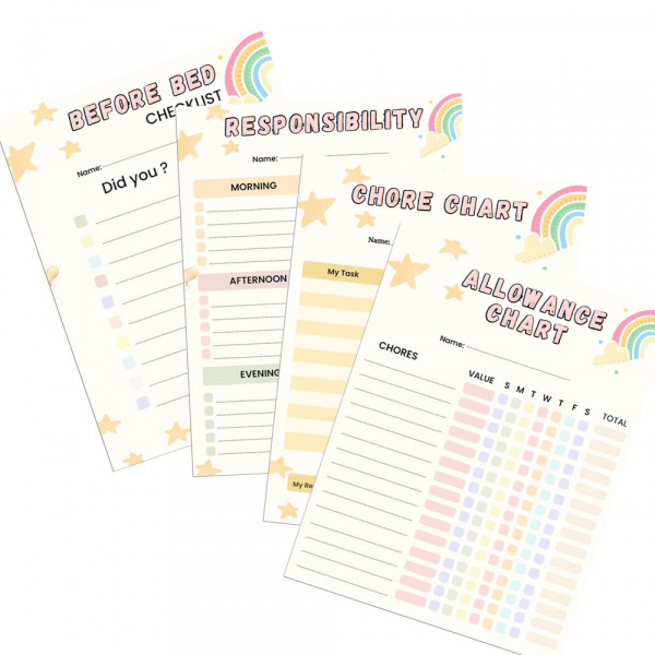 Help your child build good habits and stay on track with a chore chart.  This fun and colourful chore chart can be purchased once and printed multiple times.  Fill in your child's chores or responsibilities and see how they learn by helping you around the house and earning rewards for it.  Turn daily tasks into a fun experience.